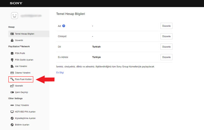 Üye girişi yapınız. Aşağıda bulunan üye giriş bağlantısına tıklayınız. Üye Giriş bağlantısı:https://account.sonyentertainmentnetwork.com/login.action