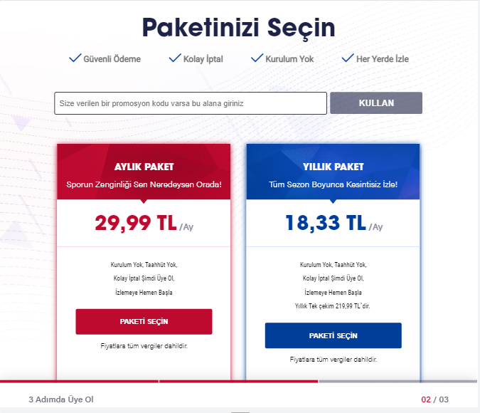 S Sport Plus Promosyon kodunuzu gelen sayfada "Promosyon Kodu" yazan alana ekleyerek "Kullan" butonuna basıp son olarak kart bilgilerinizi girerek aktif edebilirsiniz.